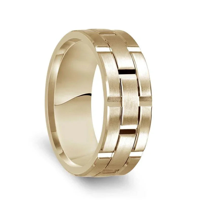14k Yellow Gold Satin Finished Men’s Wedding Ring with Vertical Grooves - 8mm