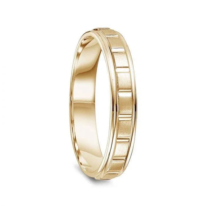 14k Yellow Gold Vertical Cut Brushed Finish Women’s Ring with Polished Round Edges - 4mm - 8mm