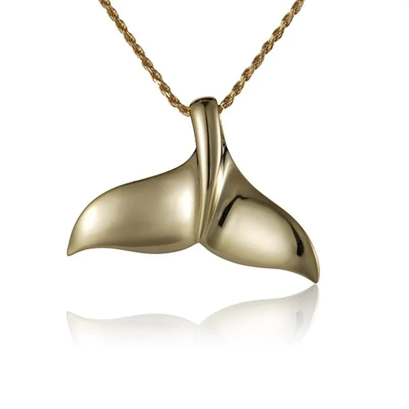 This 14k yellow gold whale tail pendant is absolutely stunning and is sure to be the center of attention. In addition to this wonderful pendant, this necklace also comes with an 18" chain. Receiving this necklace as a gift is sure to make anyone feel loved and appreciated.