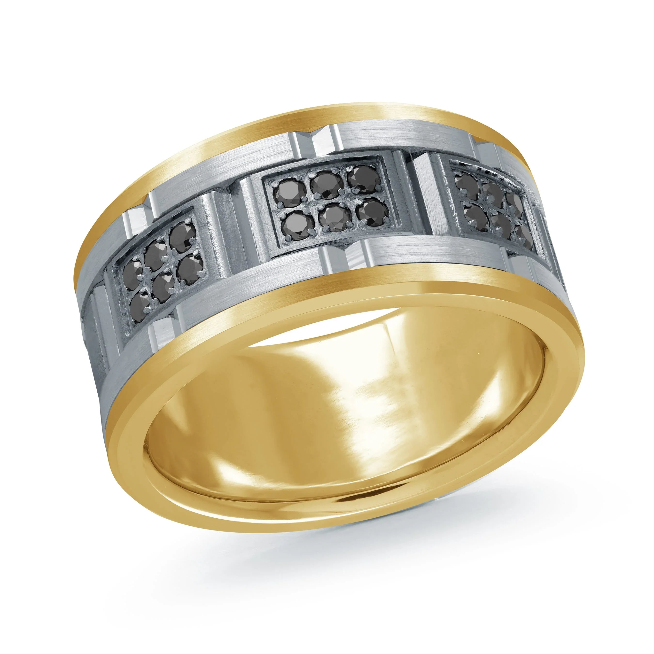 14K Yellow Gold with 14K White Gold and Carbon Fiber Ring from the Tantalum Collection by Malo - MRDTN-057-11YWBD