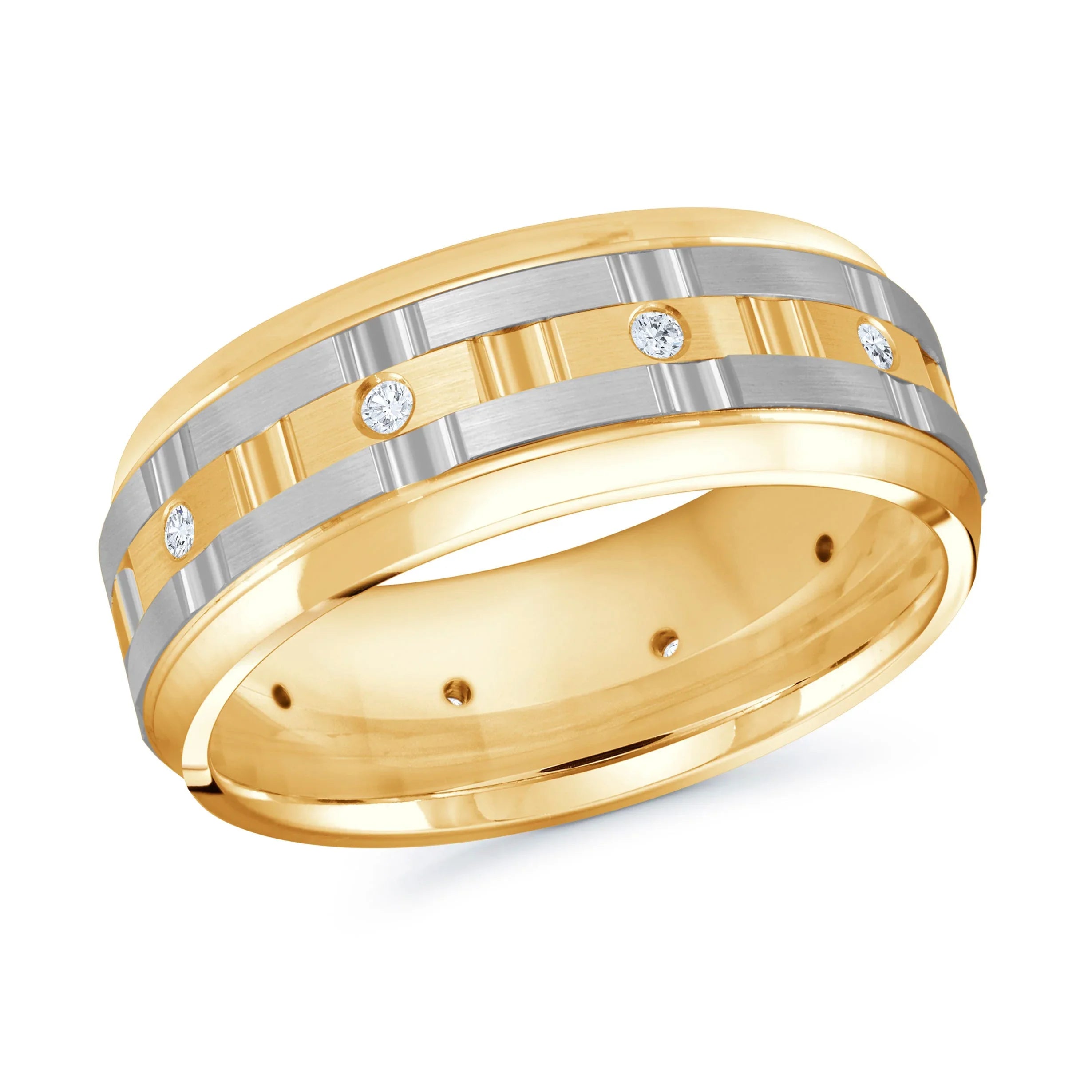 14K Yellow Gold with 14K White Gold and Inlaid Diamonds Ring from the Executif Collection by Malo - MRD-086-8YW15