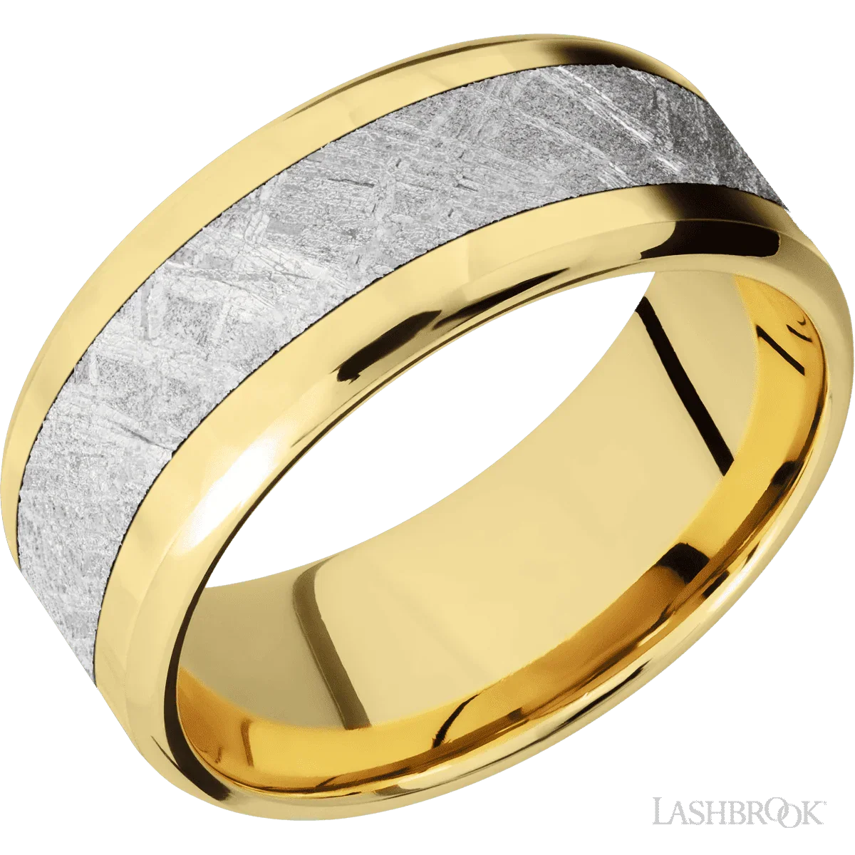 14K Yellow Gold with Rockpolish , Rockpolish Finish and Meteorite Inlay - 9MM