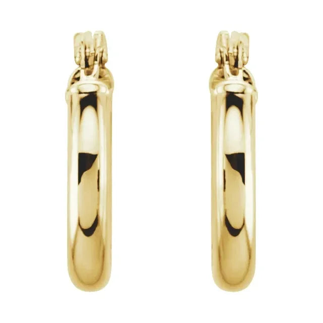 Add a touch of elegance to your look with these 14K Yellow Tube 13 mm Hoop Earrings. Featuring a polished finish and made with high-quality 14K yellow gold, these earrings are a timeless classic. The perfect accessory for any occasion.
