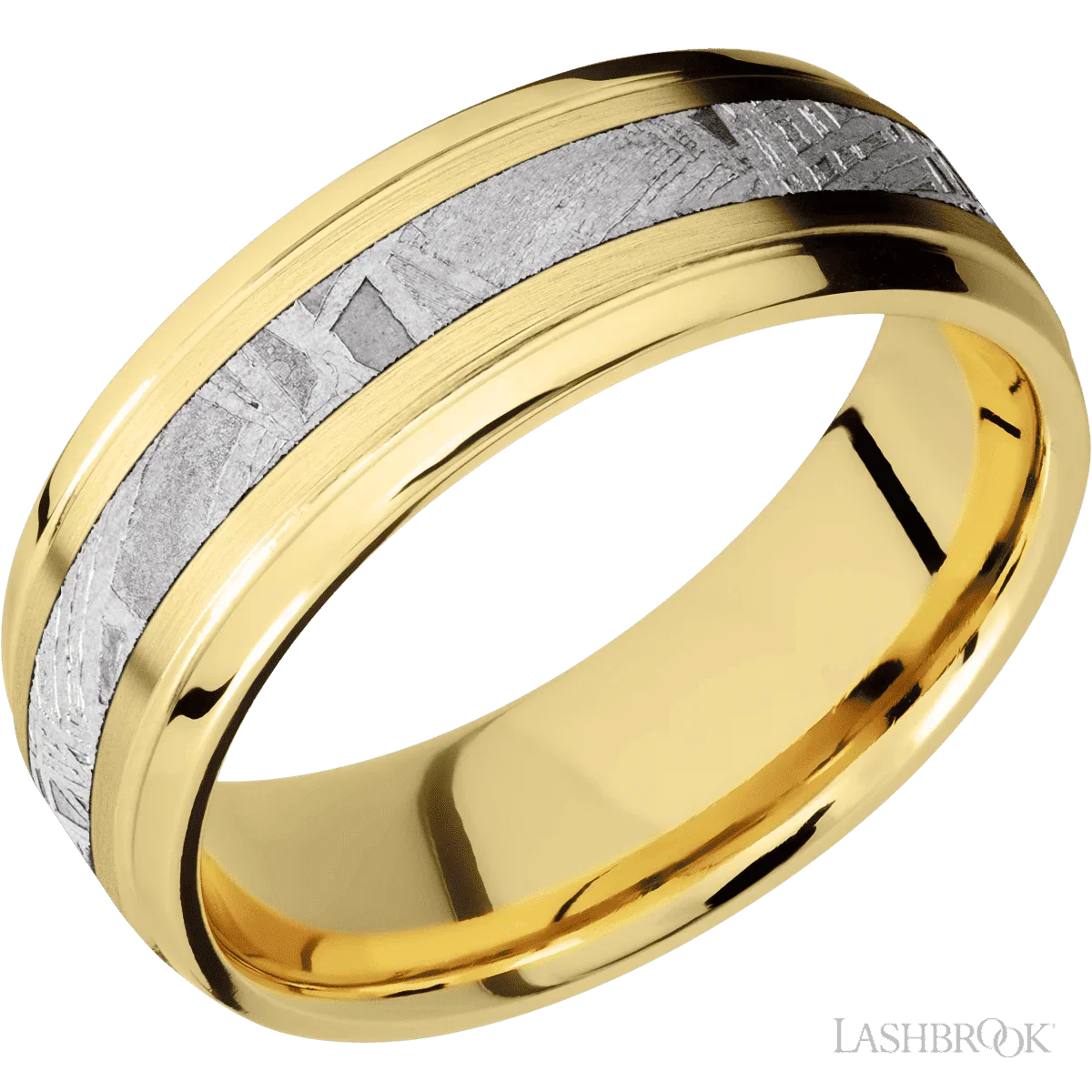 18K Yellow Gold with Satin , Polish Finish and Meteorite Inlay - 7MM
