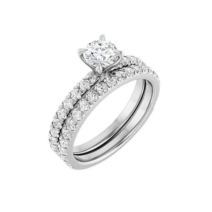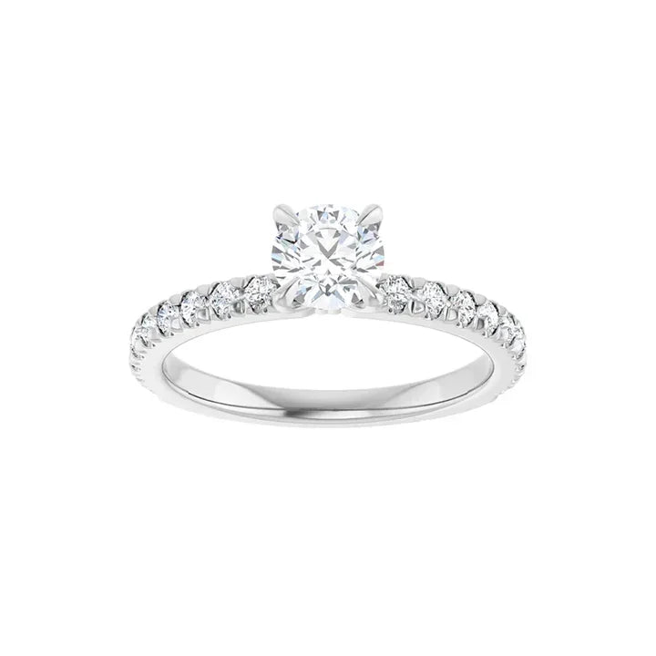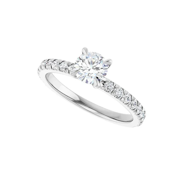 AMELIA 18K White Gold Round Lab Grown Diamond French-Set Engagement Ring