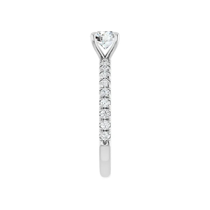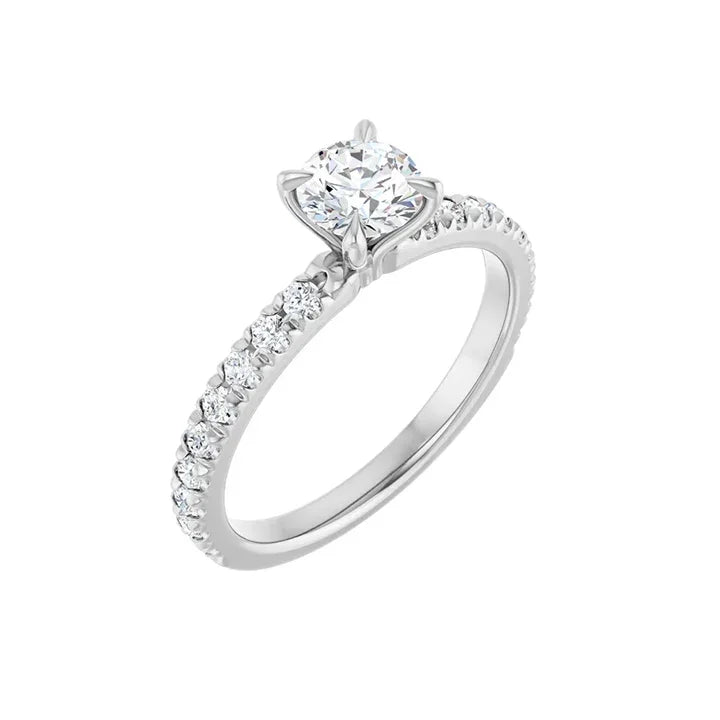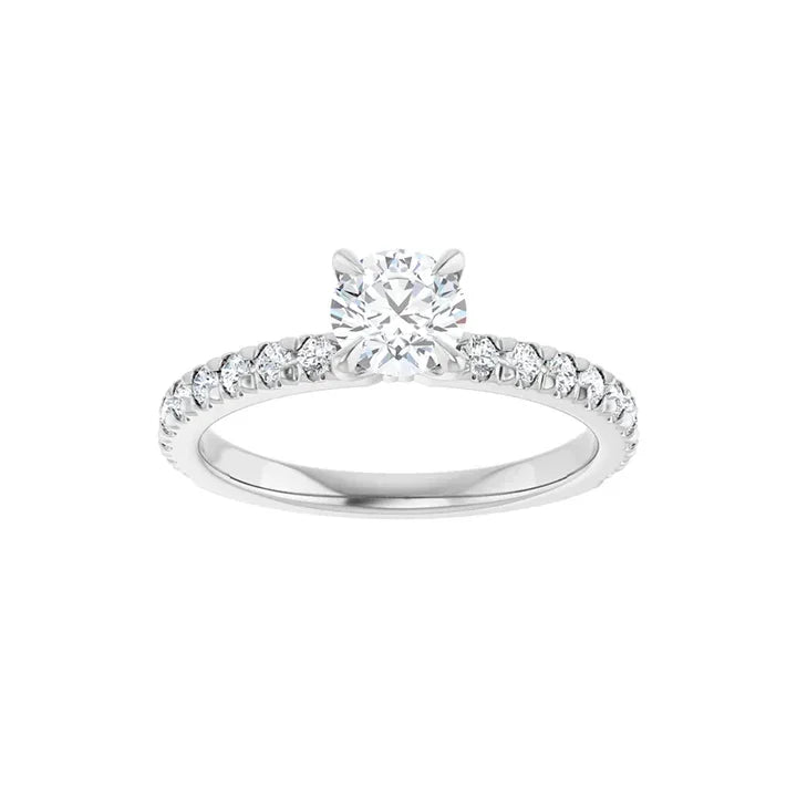 Expertly crafted and polished, the AMELIA Silver Round Engagement Ring showcases a beautiful lab grown diamond in a classic French-set style. Made with high-quality silver, this stunning ring exudes elegance and sophistication. An eco-friendly choice, with a radiant finish. Manufactured by Stuller. The center diamond is certified for authenticity by a third-party grading laboratory and is engraved with the certificate number.
