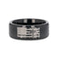 The ring’s beveled edges add a subtle, elegant contour, while the polished finish gives the black tungsten a sleek, reflective surface that highlights the detailed engraving. The smooth inner band provides a comfort fit for all-day wear, making this ring perfect for daily use or special occasions.