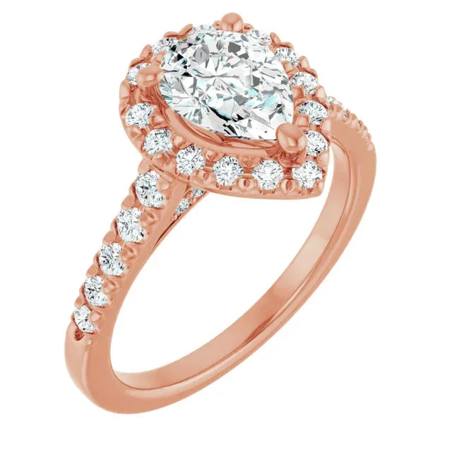 Made with a brilliant lab-grown diamond and polished finish, the pear engagement ring boasts beauty and quality. With 18K rose gold, this ring offers a unique and luxurious touch. Crafted by industry leader Stuller, its design and style make it a standout choice.