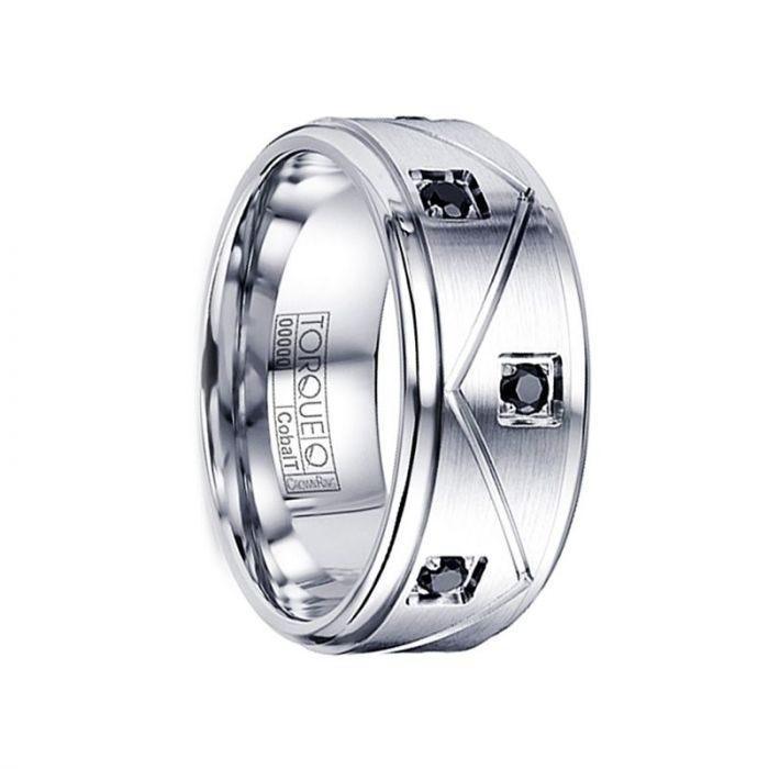 Satin Grooved Cobalt Ring with Sapphire Accents Polished Step Edges - 9mm