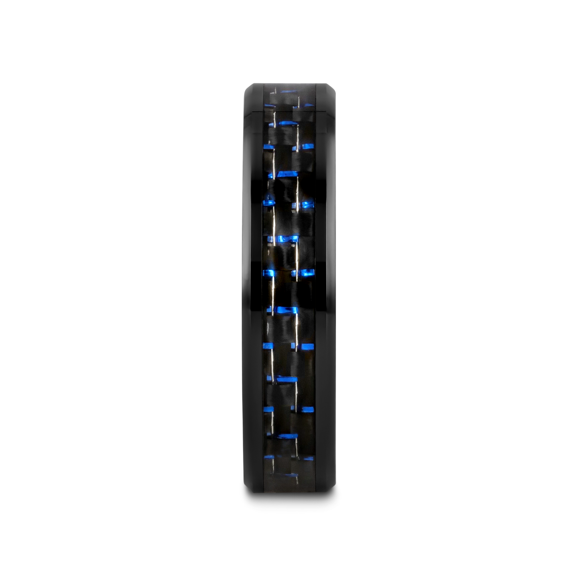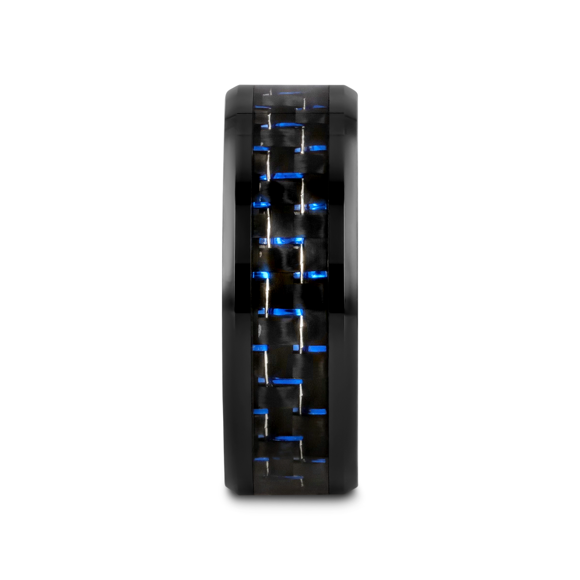 AVITUS Black Beveled Ceramic Ring with Blue & Black Carbon Fiber Inlay - 4mm - 10mm
