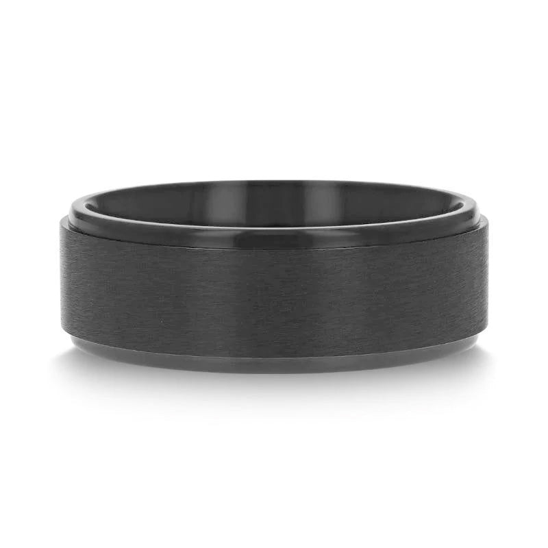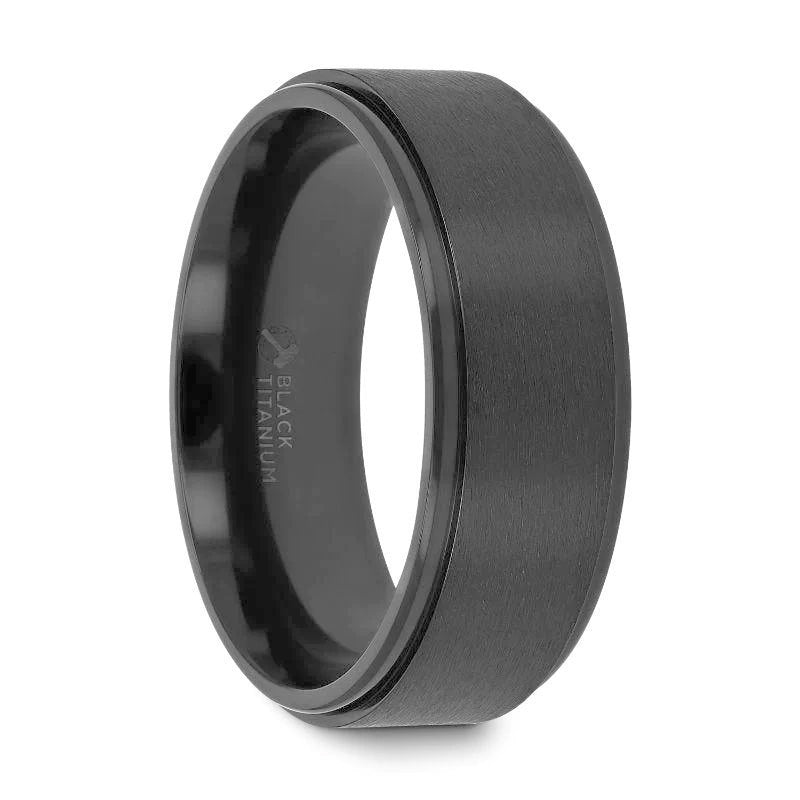 BABYLON Flat Black Titanium Ring with Brushed Raised Center and Polished Step Edges - 8mm