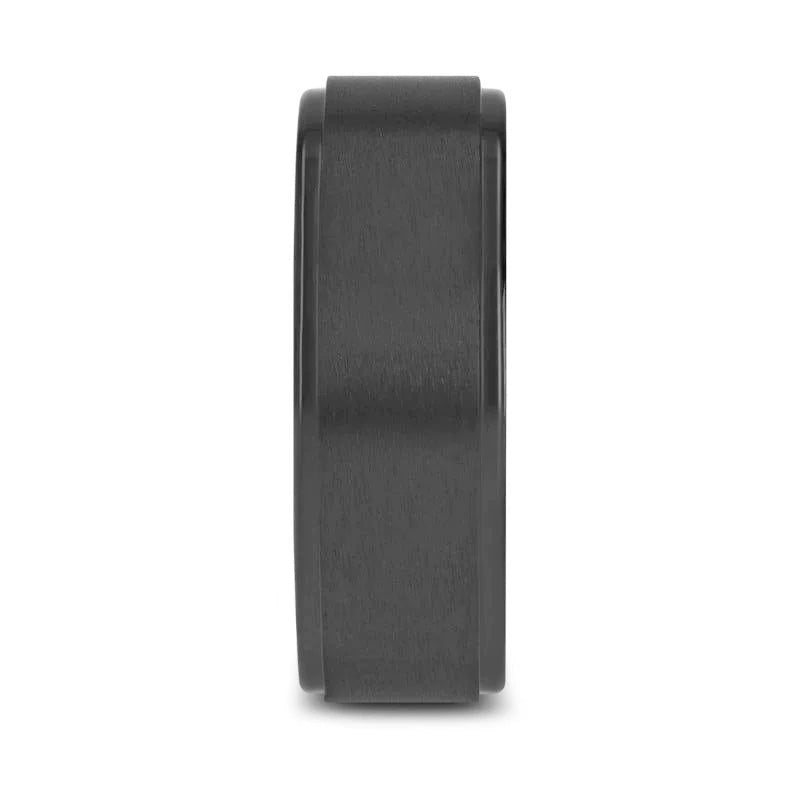 BABYLON Flat Black Titanium Ring with Brushed Raised Center & Polished Edges - 8mm