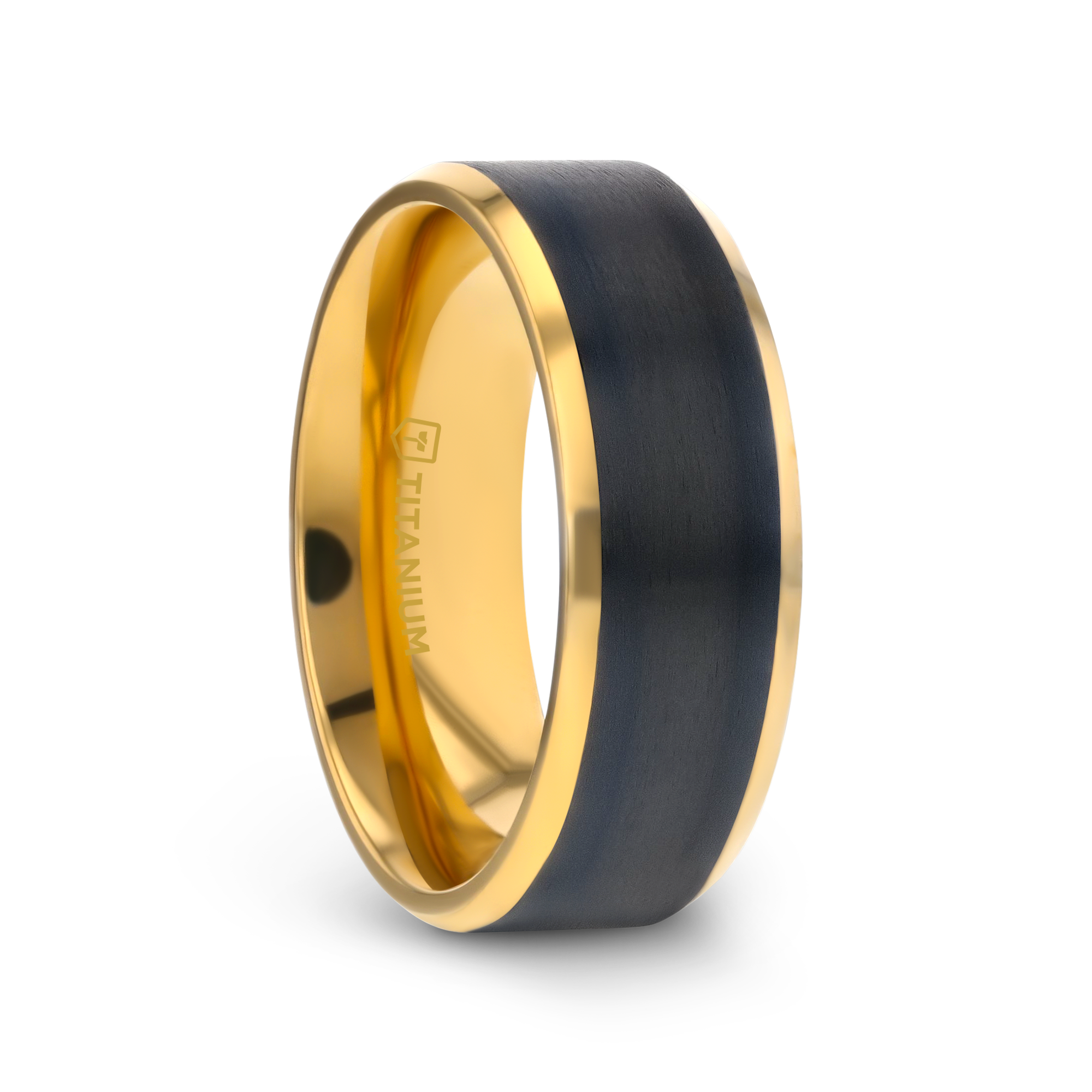 BEAUMONT Gold Plated Titanium Polished Beveled Ring with Brushed Black Center - 8mm