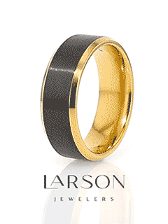 Created in breathtaking gold plated titanium, this ring is ideal for those who want a classy yet bold look. The beveled edges and interior are polished to perfection. The black center is embraced with a brushed finish, adding subtle texture. This ring is also made with a flat profile and a rounded inner shank for ultimate comfort and an easy slide.
