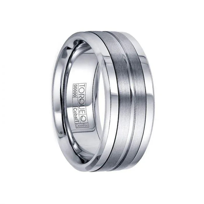 BELLIC Flat Cobalt Wedding Ring with Center Brushed Pattern Polished Edges by Crown Ring - 9mm