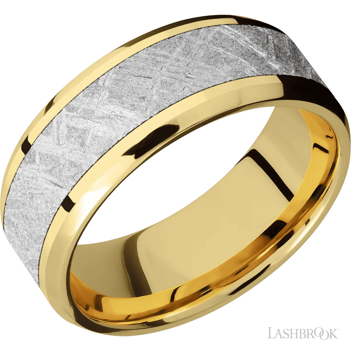 Beveled 14K Yellow Gold with Polish , Polish Finish and Meteorite Inlay - 8MM