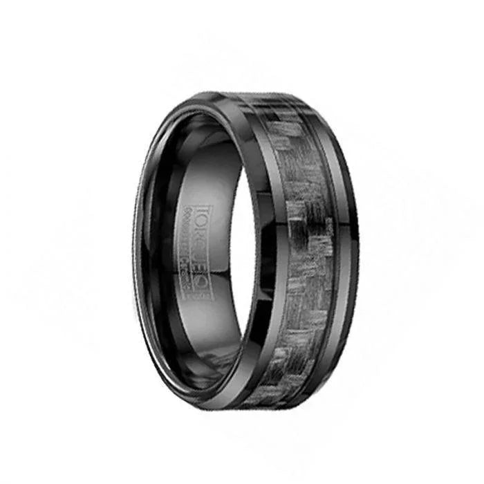 Beveled Black Ceramic Wedding Ring With Black Carbon Fiber Inlay - 8mm