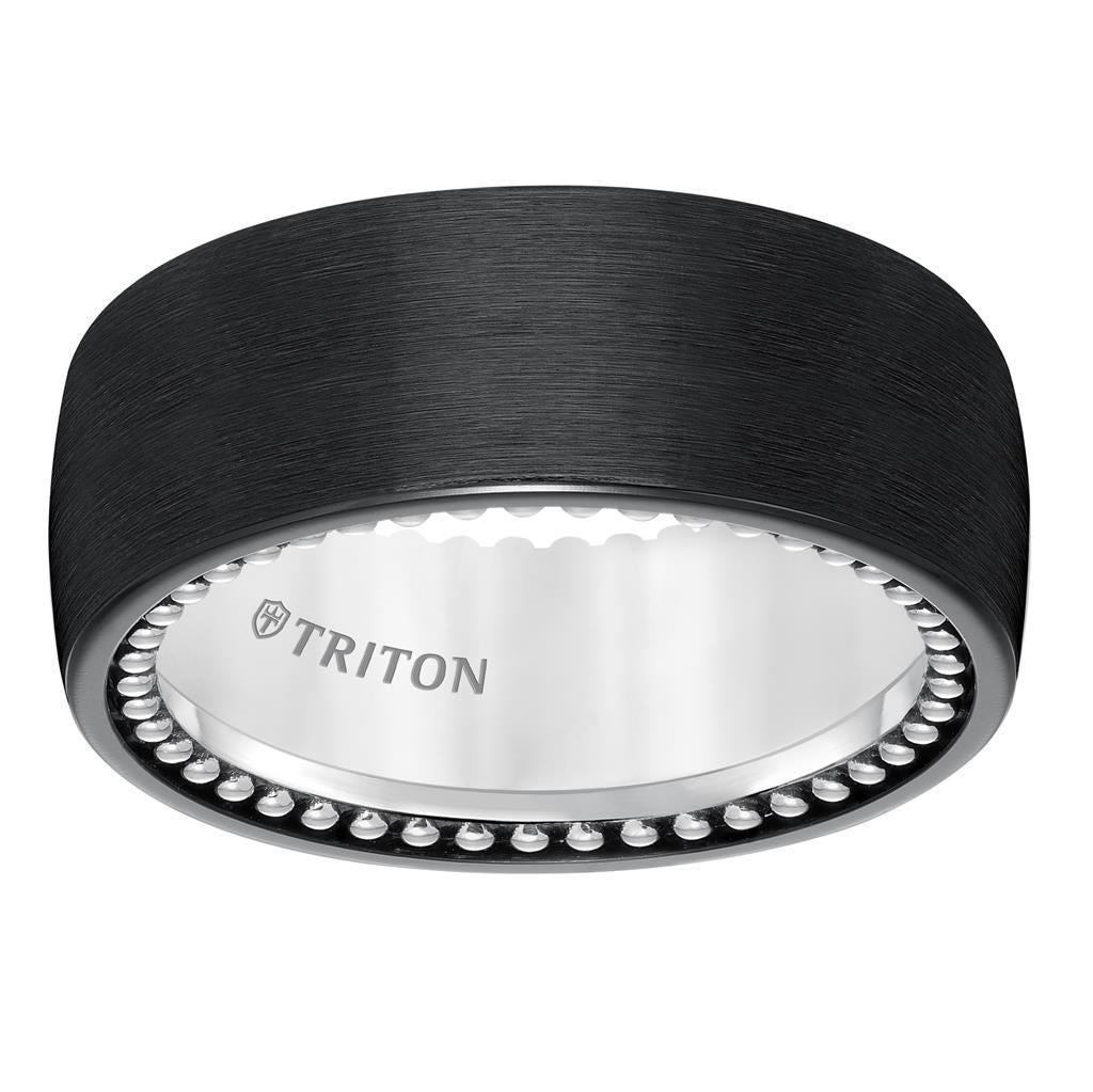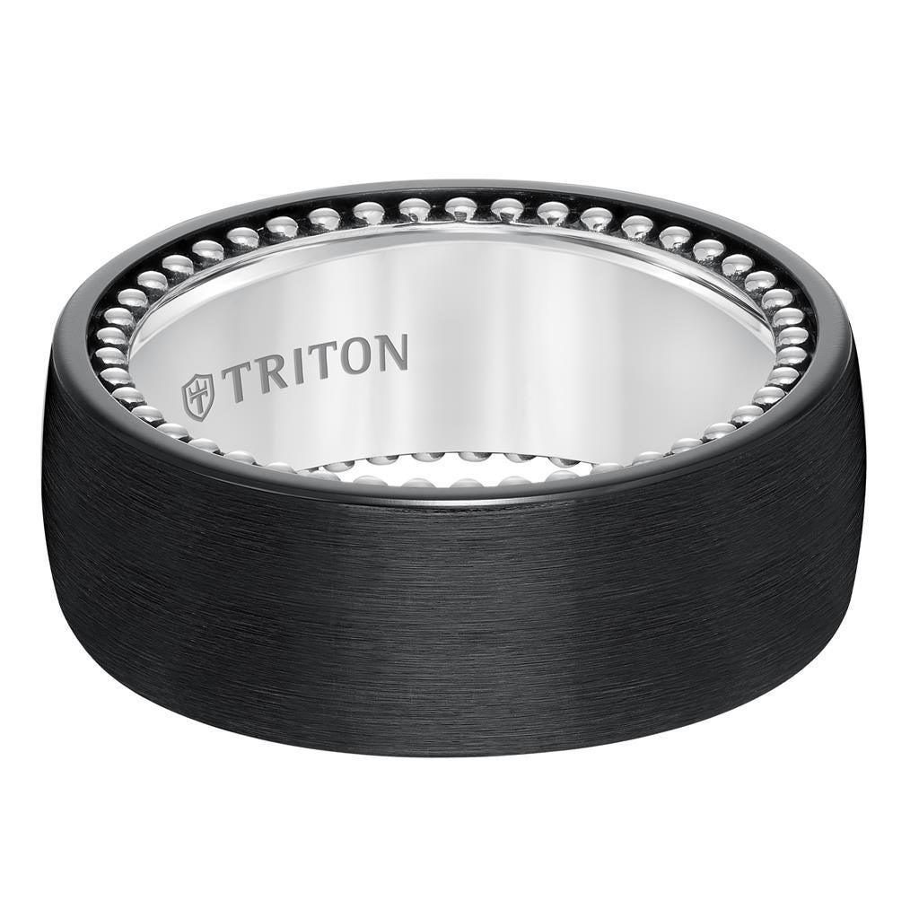 CARVER Domed Black Titanium & Sterling Silver Comfort Fit Band with Beaded Edge and Satin Finish - 9mm