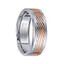 Brushed Grooved Cobalt Men’s Wedding Band with 14k Rose Gold Inlay Polished Edges - 7.5 mm