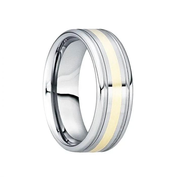 CAESAR 18K Yellow Gold Inlaid Tungsten Wedding Band with Dual Grooves - 8mm