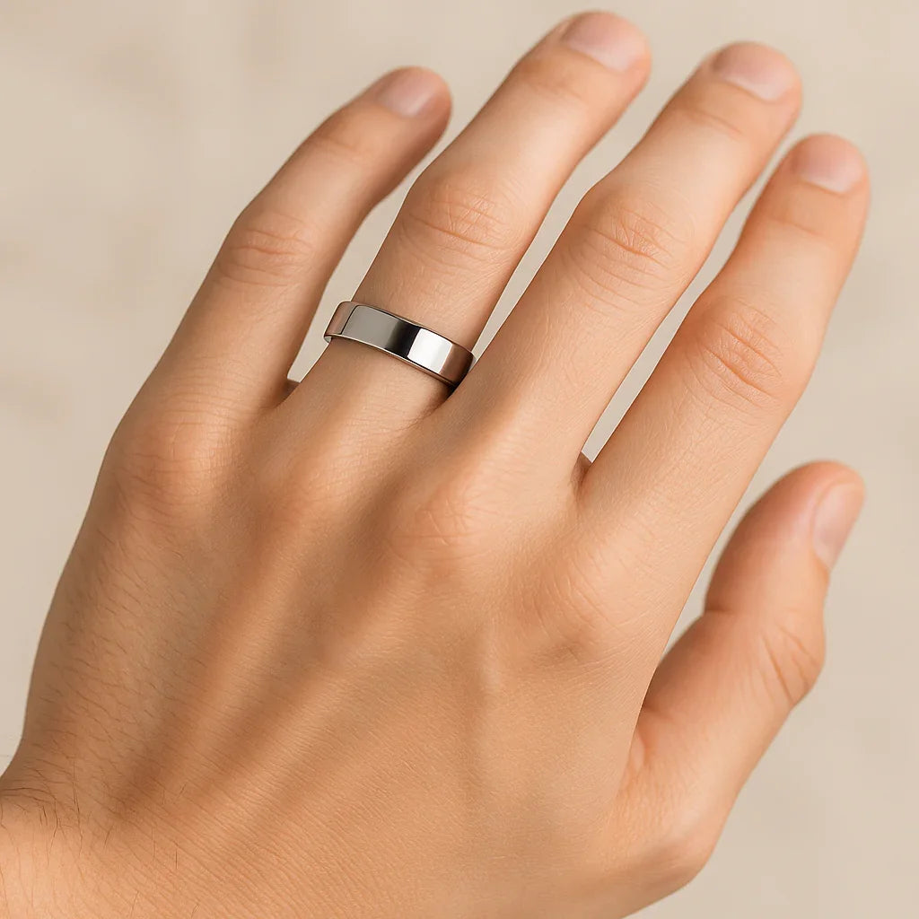 These classic Comfort Fit Cobalt Rings are made from jewelry grade durable Cobalt Chrome. This band is made in the traditional flat pipe-cut, design and has a beautifully polished mirror like finish. Cobalt rings are naturally white and are completely hypoallergenic. This ring can be worn as a Wedding Band or Promise Ring and is available in 4mm, 6mm, and 8mm.
