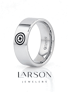 This is a precision crafted ring from our line of Comfort Fit Tungsten Carbide Rings. This ring has the Captain America logo engraved on the ring. The perfect gift for any fan. You can also have any Captain America quotes on the inside of the ring. Simply type this into the engraving box to add it to your ring.