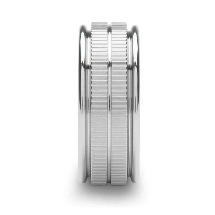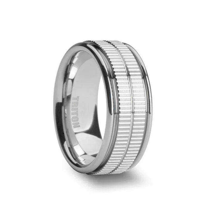 Flat White Tungsten Wedding Band with Dual Coin Edge Center by Triton Rings - 9mm