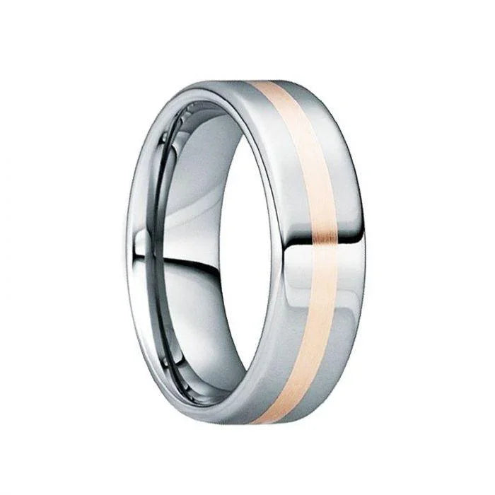 CASSIANUS Tungsten Carbide Polished Wedding Band with 18K Rose Gold Inlay - 8mm