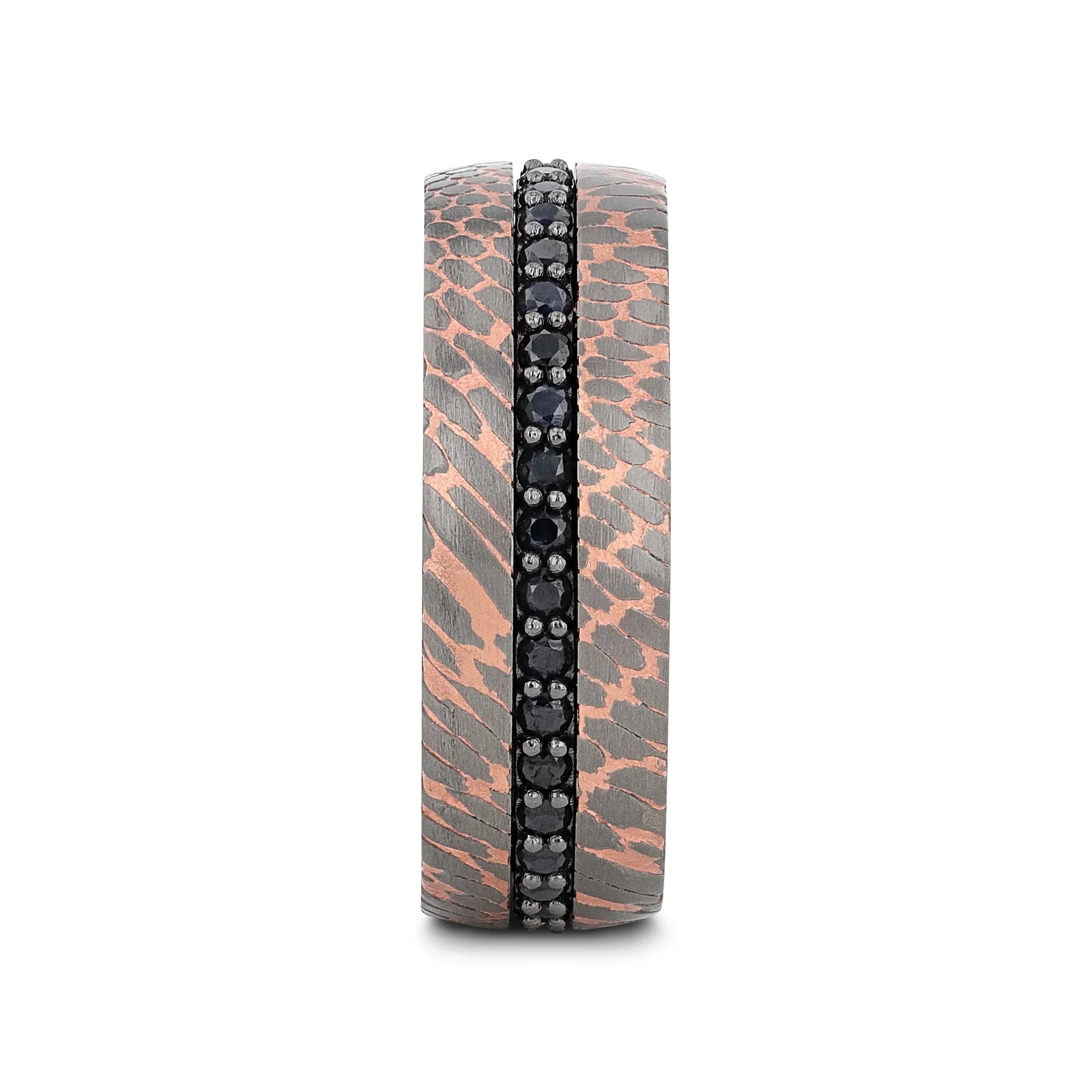 - Black Sapphire Inlay: A row of dazzling black sapphires encircles the ring, adding a sophisticated touch of elegance.