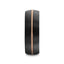 CHORDAL Black Tungsten Ring with Brass Guitar String Inlay and Whiskey Barrel Wood Inner Sleeve – 8mm