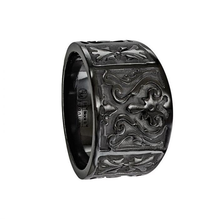 CICERO Black Titanium Ring with Casted Design by Edward Mirell - 14 mm