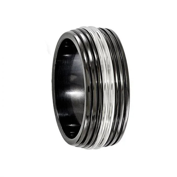 CINCINNATI Black Titanium Ring with Stainless Steel Center by Edward Mirell - 9 mm