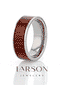 A beautiful and exotic Tungsten Carbide wedding band design by Thorsten that includes a radiant inlay of authentic red-toned Padauk Wood.