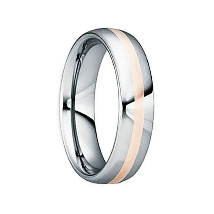 CYPRIANUS 18K Rose Gold Inlaid Tungsten Wedding Band - 6mm