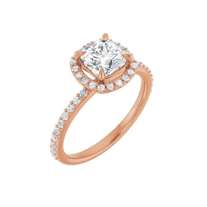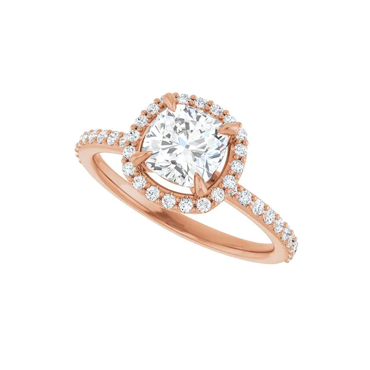 DAYSTAR 14K Rose Gold Halo Cushion Lab Grown Diamond Engagement Ring