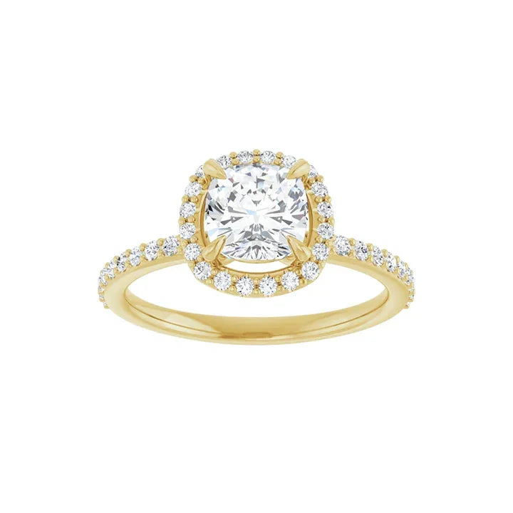 Expertly crafted with precision, the DAYSTAR 18K Yellow Gold Halo Cushion Lab Grown Diamond Engagement Ring shines with a polished finish. Featuring a dazzling lab grown diamond, this ring is the perfect choice for a timeless and elegant look. Made with 14K yellow gold, this ring exudes warmth and sophistication. Manufactured by Stuller, a trusted name in the industry. The center diamond is certified for authenticity by a third-party grading laboratory and is engraved with the certificate number.