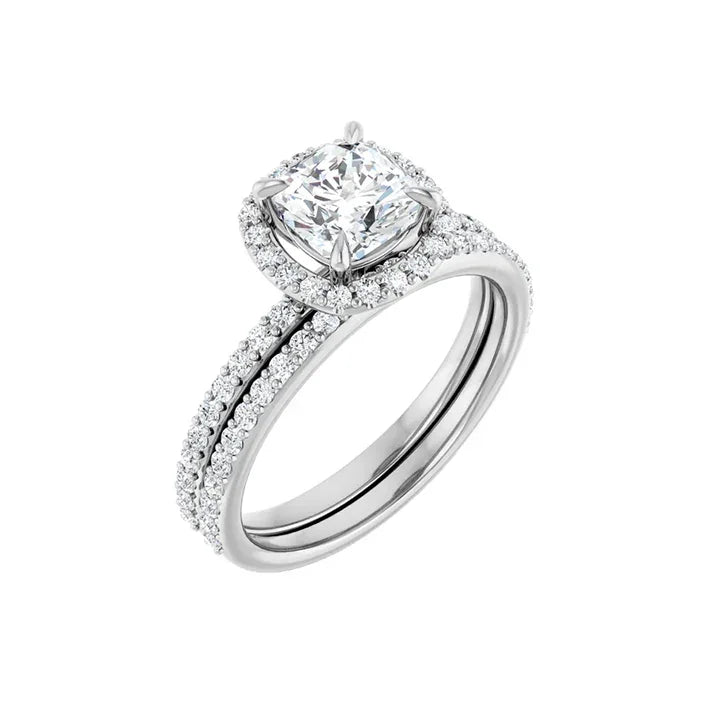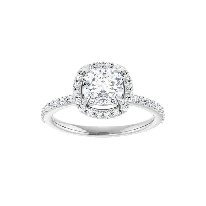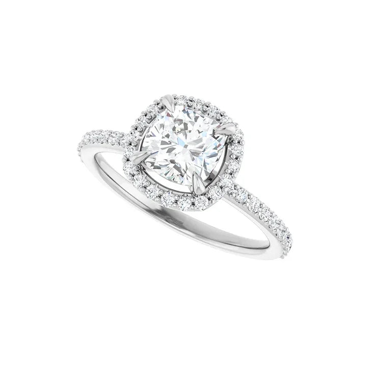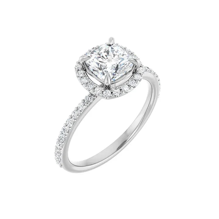 DAYSTAR Silver Halo Cushion Lab Grown Diamond Engagement Ring
