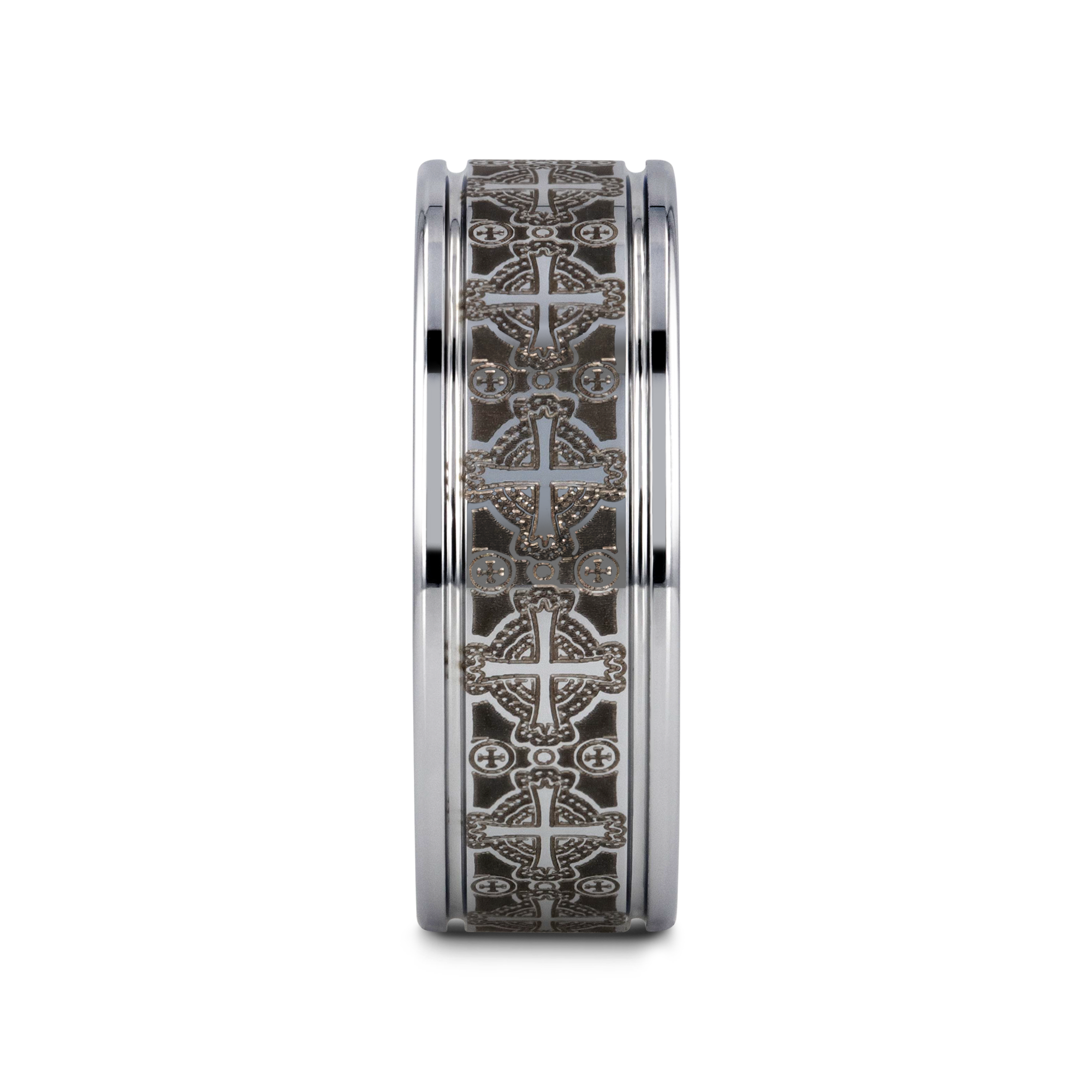 DEACON Flat Tungsten Ring Laser Engraved Celtic Crosses - 8mm