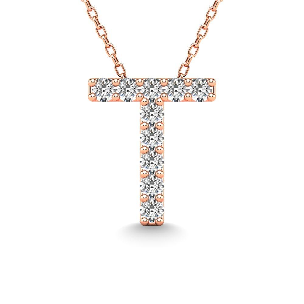 Diamond 1/10 Ct.Tw. Letter T Pendant in 14K Rose Gold"