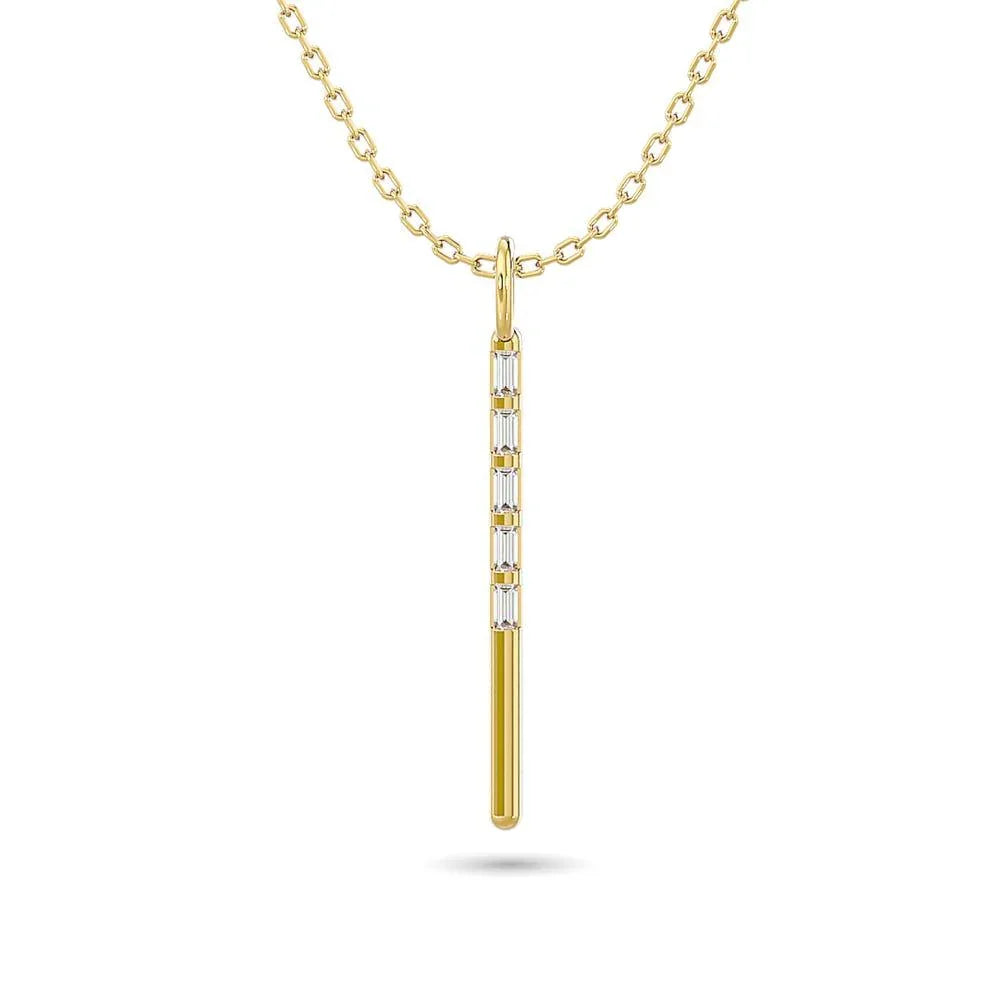 Diamond 1/10 Ct.Tw. Straight Baguette Bar Pendant in 10K Yellow Gold