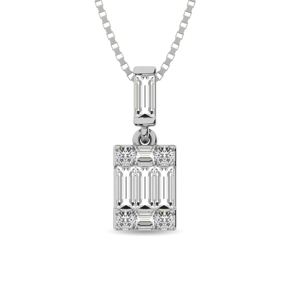 Diamond 1/6 Ct.Tw. Round and Baguette Fashion Pendant in 14K White Gold
