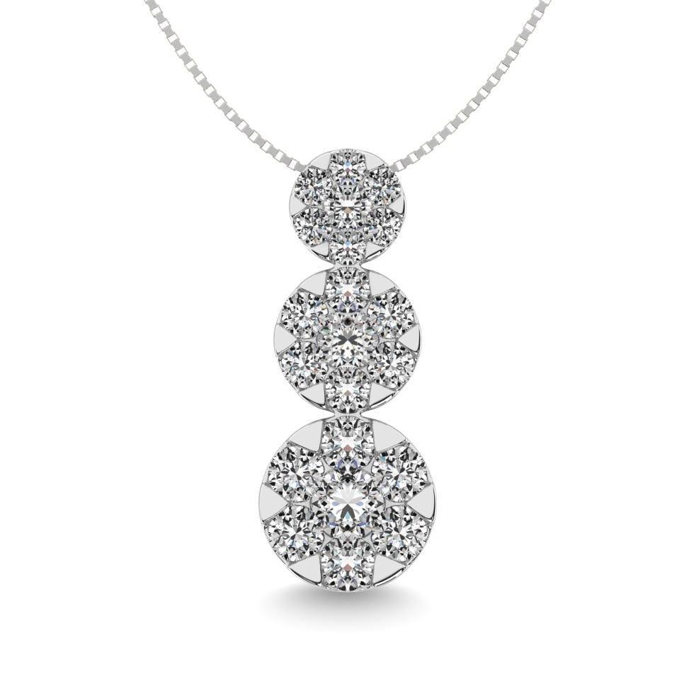 Diamond 2 ct tw Three Stone Flower Pendant in 14K White Gold