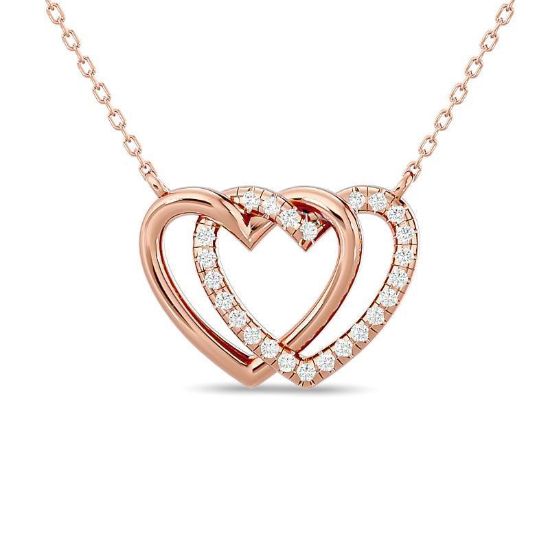 Diamond Duel Heart Fashion Necklace 1/8 ct tw in 10K Rose Gold