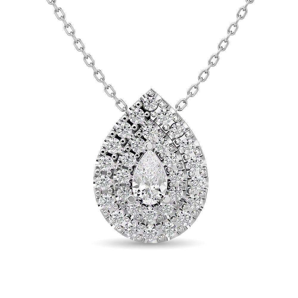 Diamond Pear Cut Double Halo Pendant 3/8 ct tw in 14K White Gold