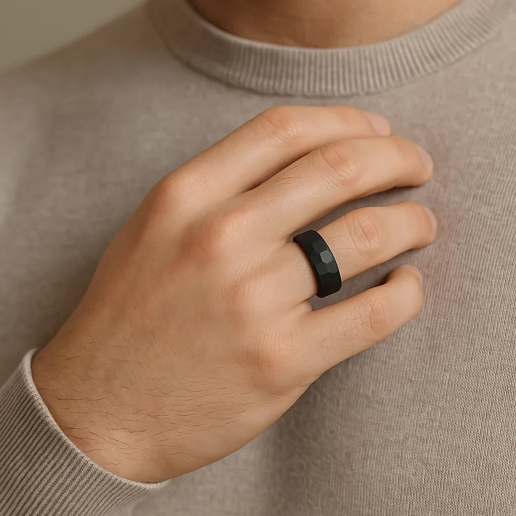 8mm Black Tungsten Carbide Edge to Edge Band with Hammered Pattern