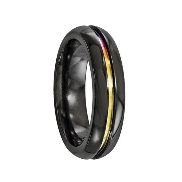 Edward Mirell Black Ti Rainbow Anodized Center Polished 6mm Band