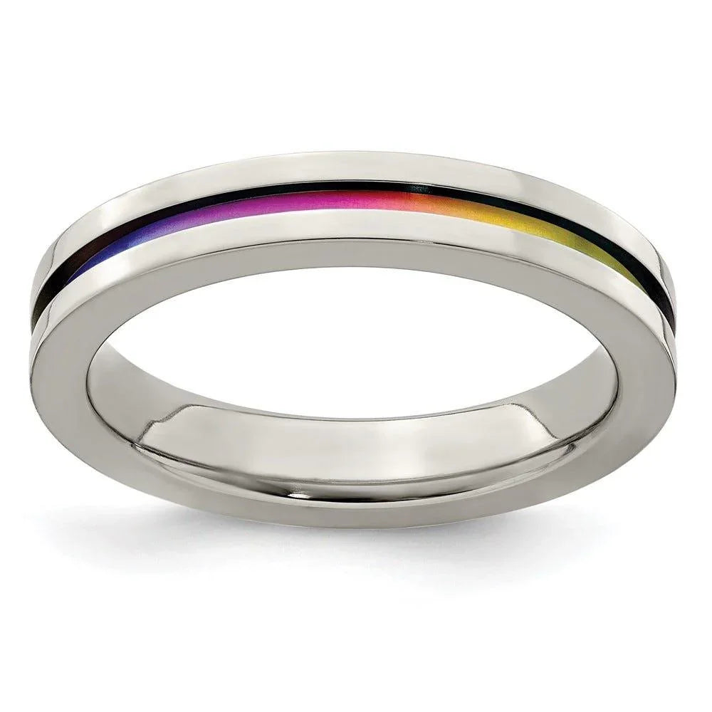 Edward Mirell Gray Titanium Rainbow Anodized Grooved Flat 4mm Band