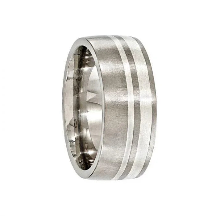 Brushed Titanium Ring with Silver Inlays by Edward Mirell - 9 mm