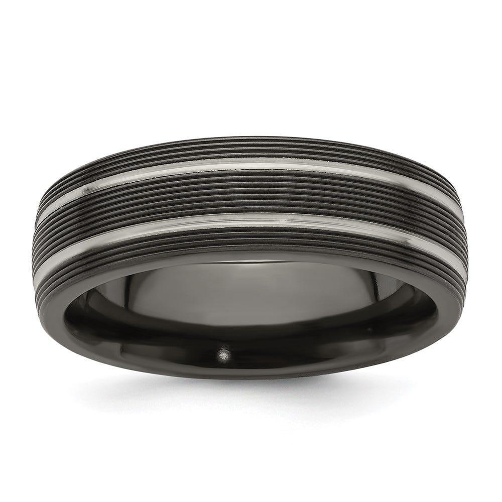 Edward Mirell Titanium Black Ti Textured Lines 7mm Band
