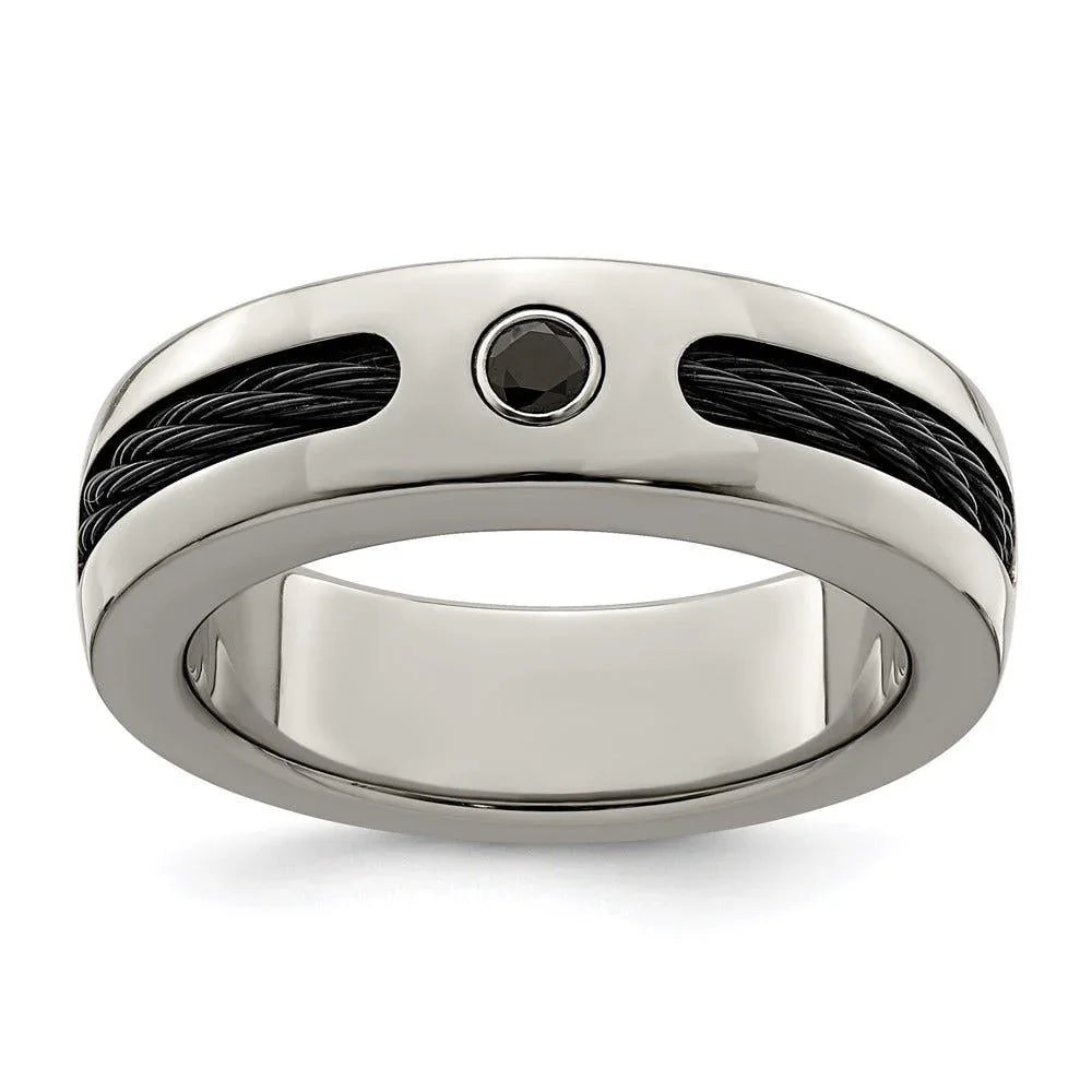 Edward Mirell Titanium Cable and Black Spinel with Sterling Silver Bezel 7mm Band